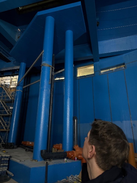 Wir freuen uns, dass wir eine ganz besondere Führung mitmachen dürfen, die uns auf die Baustelle des größten Aquariums Berlins bringt. Während der anschaulichen und spannenden Führung von Stefan Golmitz von SG+ Architekten lernen wir unglaubliche Fakten, z.B. dass das die Becken hier insgesamt ein Fassungsvermögen von 10 Millionen Litern Wasser haben und dass die große, 37 cm dicke Scheibe satte 26 Tonnen wiegt. Wir staunen über die beeindruckende Technik, die für Filterung und Aufbereitung der 40 Becken notwendig ist.
