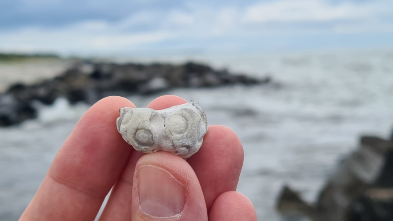 Die Tipps unseres eigenen Buches befolgend, finden wir hier in kurzer Zeit Moostierchen, Schwämme, Kronenseeigel und Bernsteine. = Es lohnt sich also immer noch!