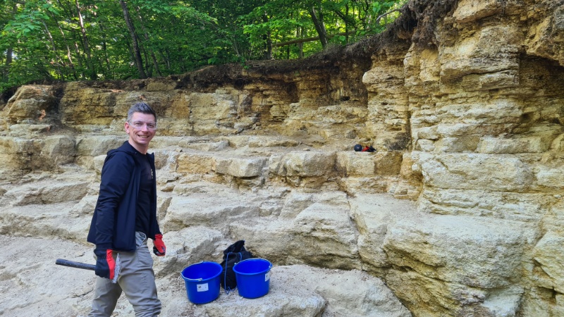 Zeit für eine Dienstreise. Es geht auf Fossilienjagd zu einem Kalksteinbruch in der Nähe von Braunschweig. Im Erlebnissteinbruch am Markmorgen kann man einfach Schätze finden! Hier gibt es Fossilien aus dem „Oberen Muschalkalk“ - vor etwa 210 Millionen Jahren.